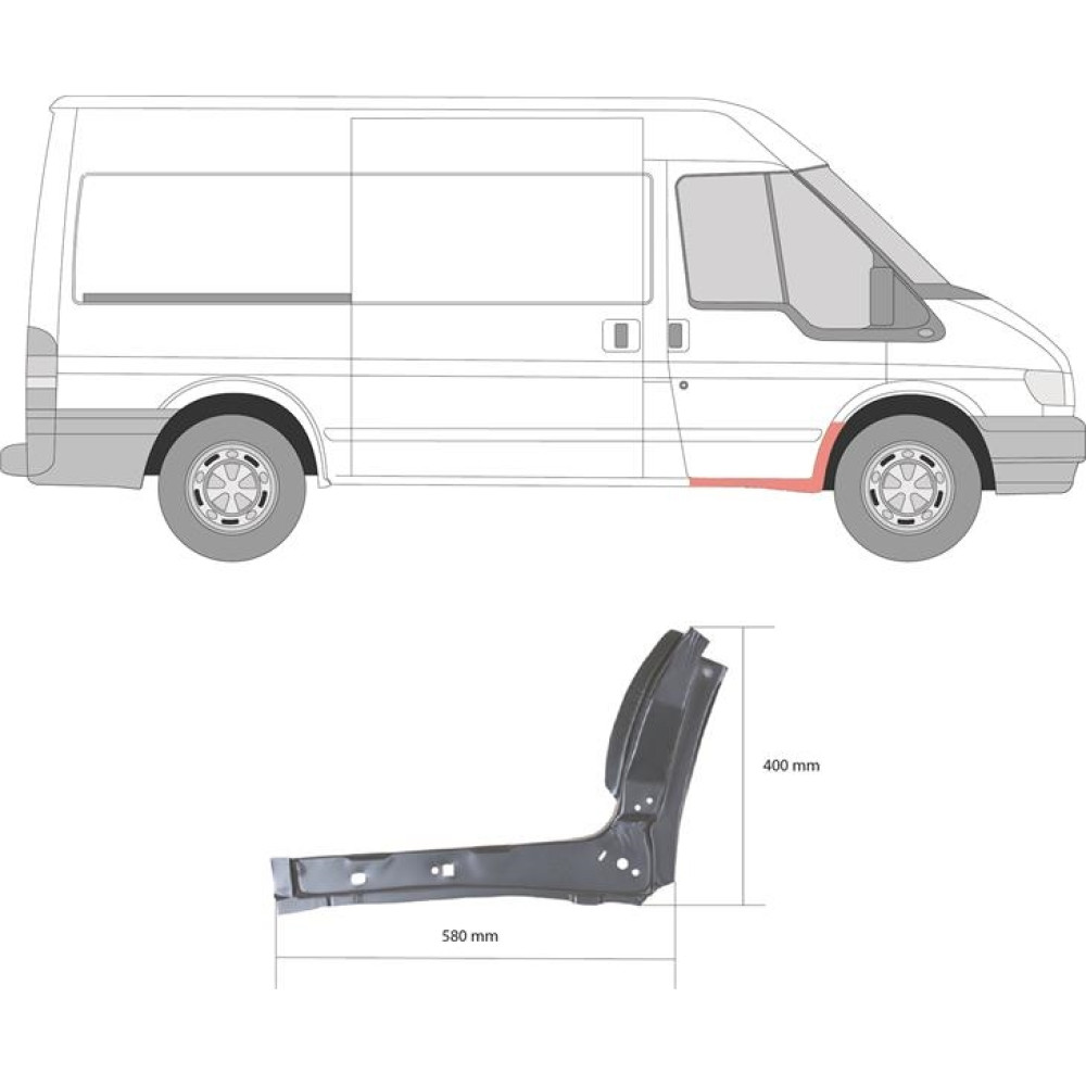 Кузов елемент. Розташований усередині порогу та арки в передній частині автомобіля. Виконує функцію підсилювача порога переднього отвору дверей.