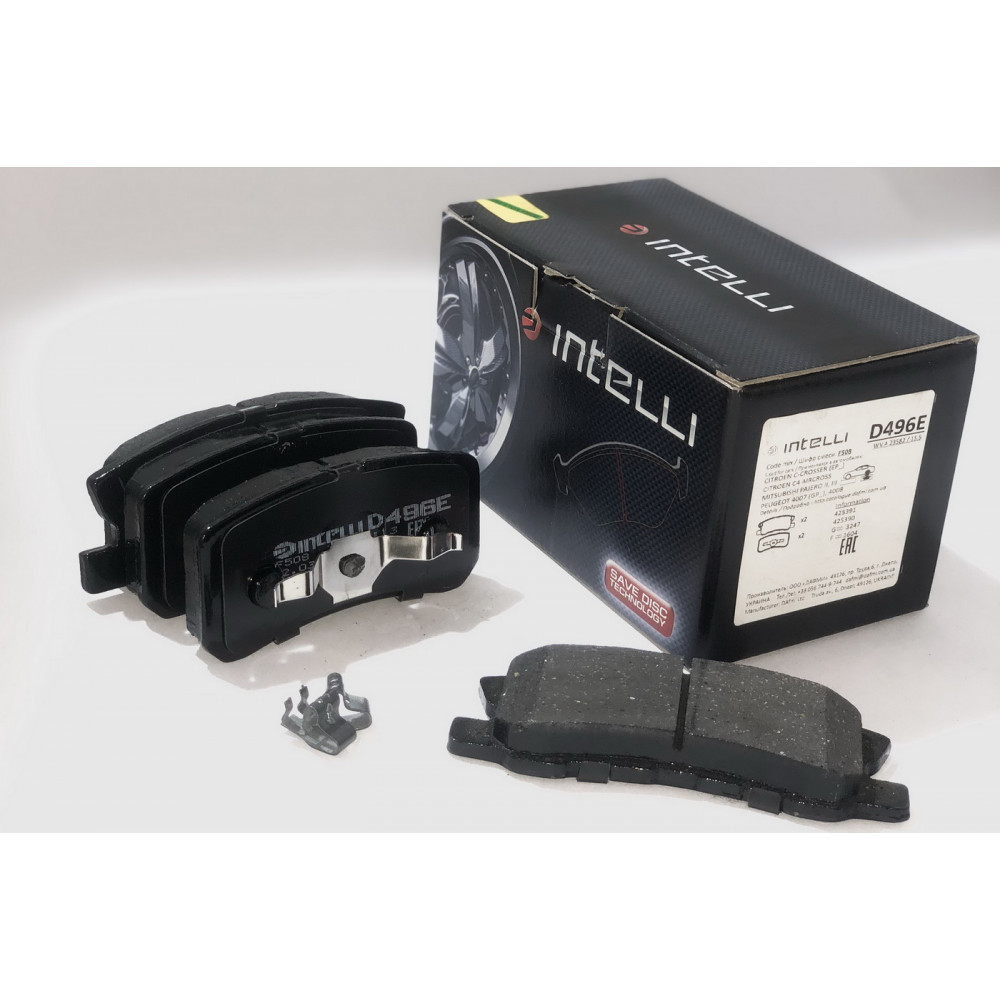 Колодки тормозные MITSU Pajero III 00-06, Pajero IV 07-…, Grandis 04-…, Outlander II 06-12, ASX 10-… // PEUG 4007 10-…, 4008 12-… // CIT C-Crosser 07-…, C4-Aircross 12-… D496E (GDB3247) (пр-во Intelli)