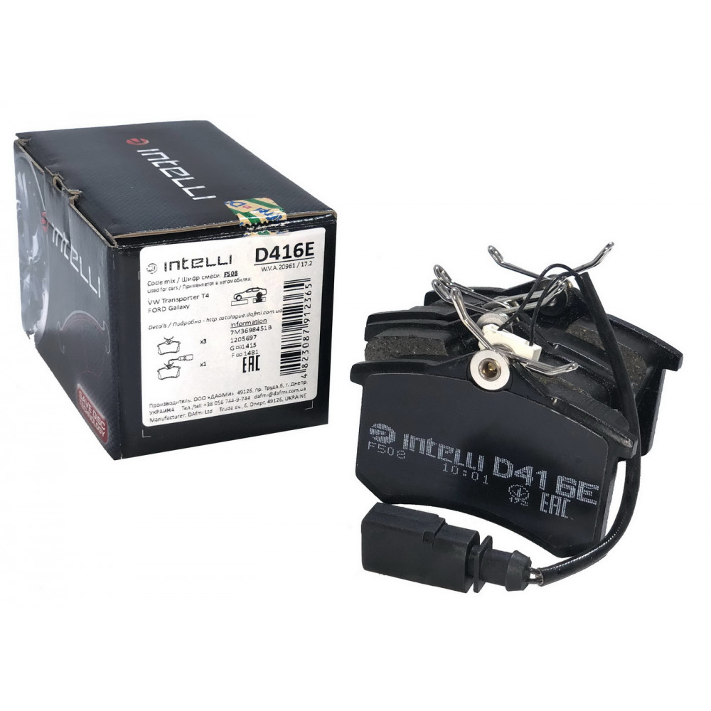 Колодки тормозные VW Transporter T4 07.90-08.04, Sharan 09.95-03.10 // FORD Galaxy 03.95-05.06 // SEAT Alhambra 04.96-03.10 D416E (GDB1415) (пр-во Intelli)